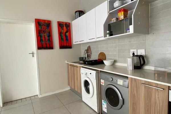 The unit features smart metering, a gas geyser and hob, an electric oven, a gas braai, free fibre-to-home internet, and DStv readiness.