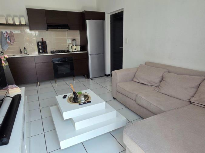 This modern 1-bedroom, 1-bathroom luxury apartment offers a premium living experience in the heart of Greenstone. Located on the top floor of a quiet and exclusive apartment block, it boasts high ceilings, contemporary finishes, and a private balcony with a stunning view. The open-plan kitchen seamlessly connects to the lounge and features stylish modern finishes such as white granite countertops, ample cabinetry, and space for two undercounter appliances plus a single-door fridge. The lounge and bedroom extends onto a private balcony, ideal for relaxing or entertaining.